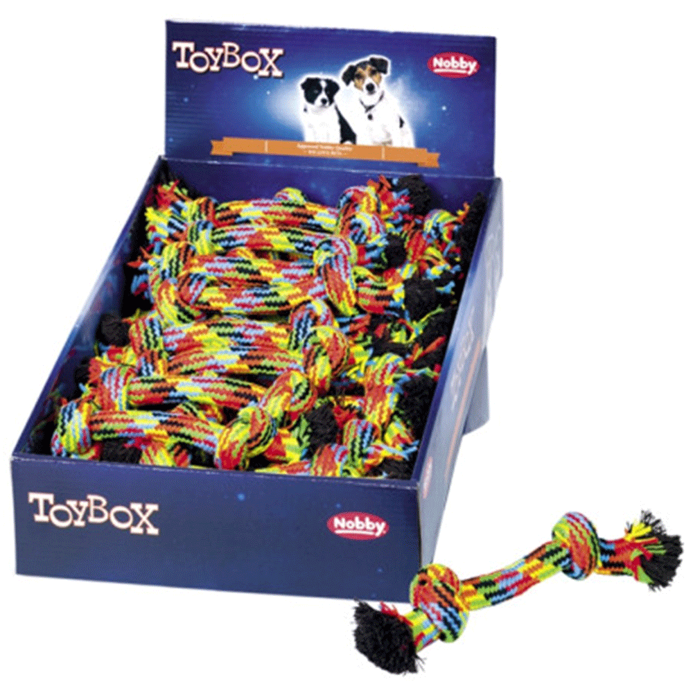 Speeltouwen zijn geschikt om samen mee te spelen en voor de zelfstandige bezigheid van uw hond. Of het nu gaat om stoom afblazen in trek- en trekspelletjes of om uit te dagen in apporteer- of zoekspelletjes – de verschillende variaties van Nobby speeltouwen zullen uw hond zeker aanspreken. Dit speeltouw is gemaakt van 65% katoen en 35% polyester. Het reinigt tanden en interdentale ruimtes op een speelse manier met behulp van natuurlijke katoenvezels.