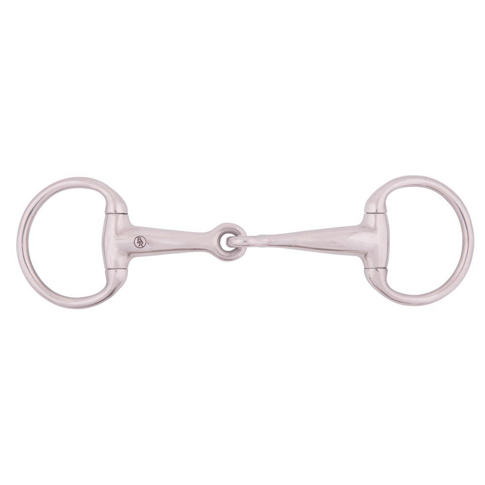Enkel gebroken bit, massief roestvrij staal, ringen 55 mm. Het mondstuk heeft een dikte van 16 mm.