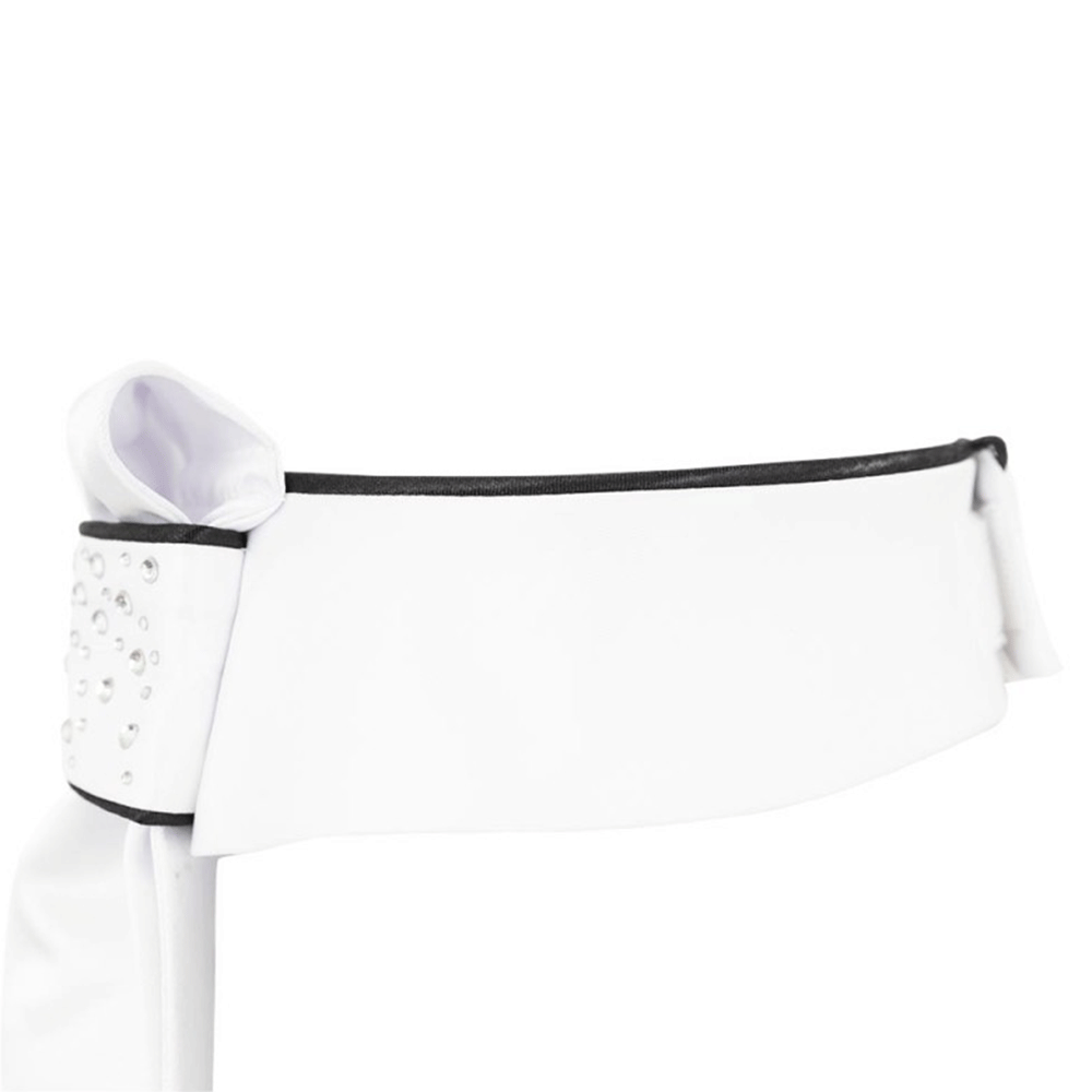 De plastron is uiterst praktisch in gebruik, hoeft niet te worden gevouwen en ook het gebruik van een plastronspeld is overbodig. De plastron is gemakkelijk om de boord van het wedstrijdshirt of de wedstrijdblouse te bevestigen door middel van de klittenbandsluiting aan de achterkant.