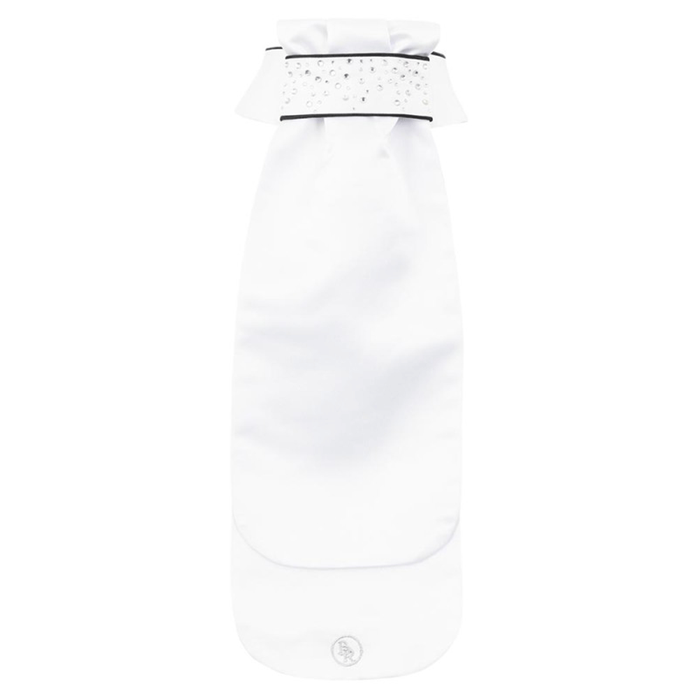 BR geplooide plastron Leon is gemaakt van luxe 100% polyester satijn en heeft een dubbele overslag. De glanzende strass-steentjes, subtiele contrastbies en de zilveren BR-borduursels maken de plastron tot een mooi, luxe geheel.