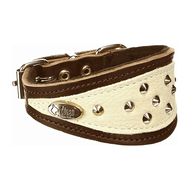 Dingo zachte leren halsband bruin/wit 12400