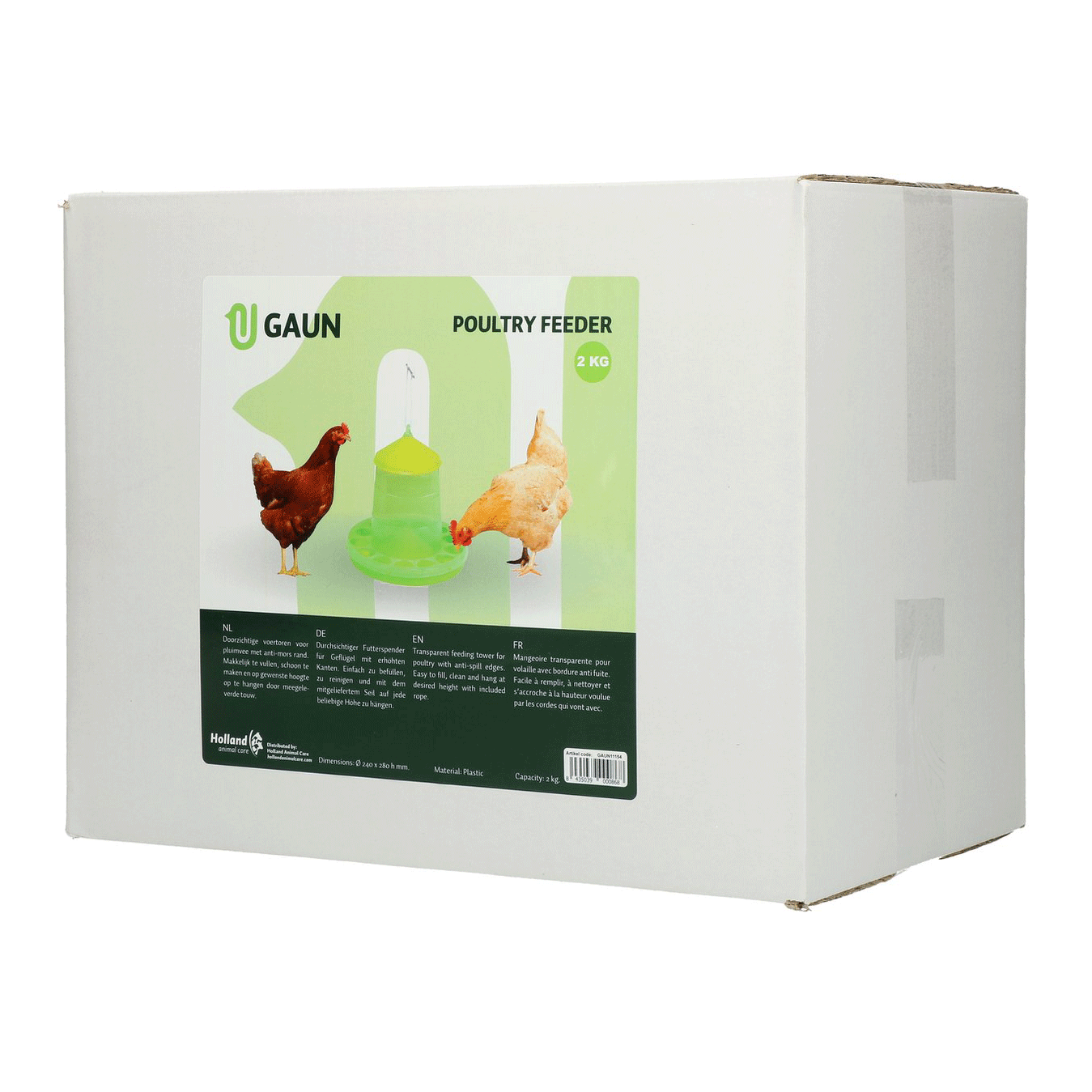 De Pluimvee voertoren Bio Green Lemon is gemaakt van duurzaam en transparant bio-kunststof. Hierdoor is het altijd mogelijk om in één oogopslag te zien of er nog genoeg voer in de voertoren zit. Daarnaast beschikt de toren over handige anti-morsranden, waardoor er nooit voer buiten de toren kan vallen. De voertoren is te bevestigen middels het bijgeleverde touw, maar het is ook mogelijk om de toren op de grond te plaatsen.
