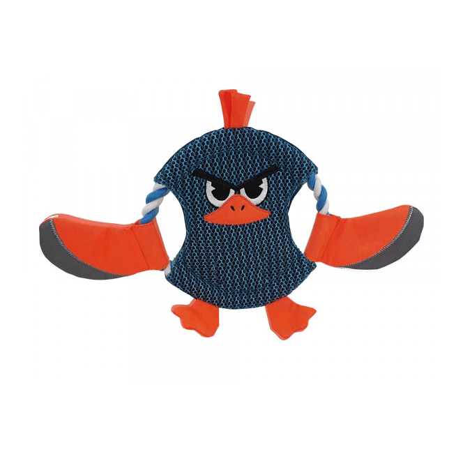 Knuffeldieren zijn niet alleen geliefde metgezellen van kinderen, maar worden ook zeer goed geaccepteerd door honden, vooral puppy’s. De grappige Fly Disc “Duck” met touw bestaat uit robuust gaas en nylonweefsel en heeft reflecterende elementen, knetterende vleugels en een pieper.