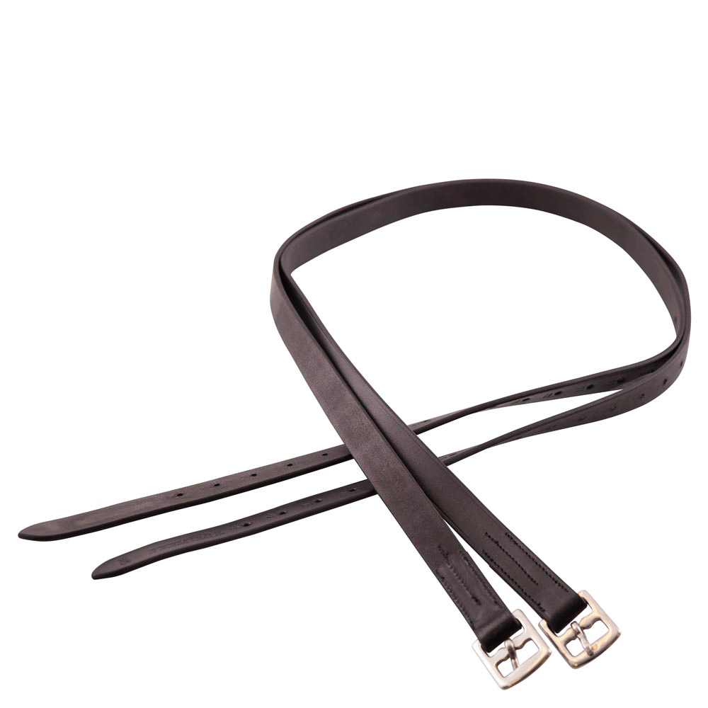 Lederen beugelriem met nylon inlage bij de gespbevestiging en voorzien van roestvrijstalen gespen, 25 mm.